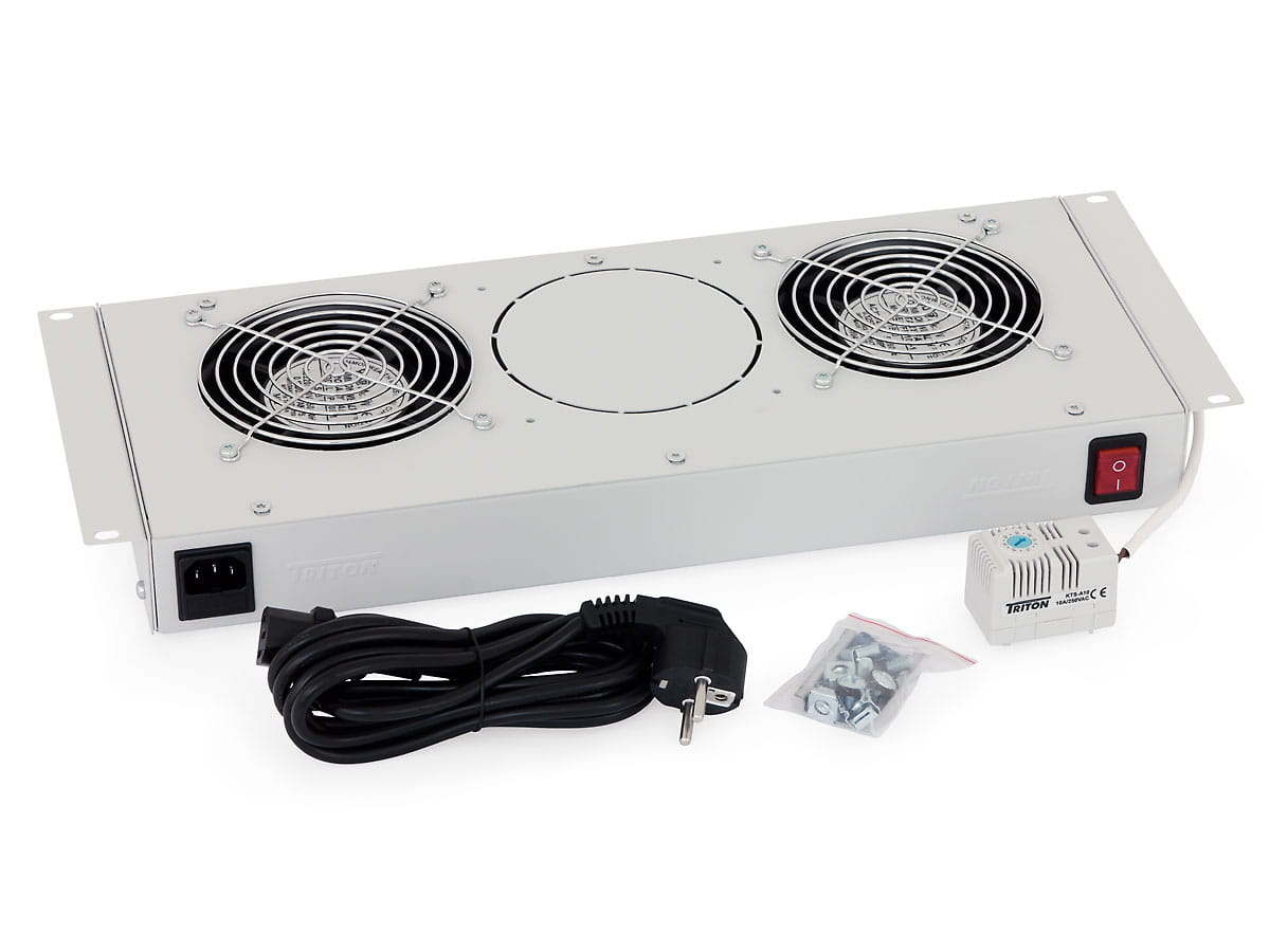 Panel wentylacyjny rack 19" TRITON pionowy 2 wentylatory+term. 2U