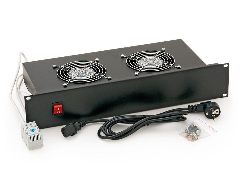 19" pozioma jednostka wentylatorowa, 2 wentylatory, 2U, 230V/ 46 W, termostat