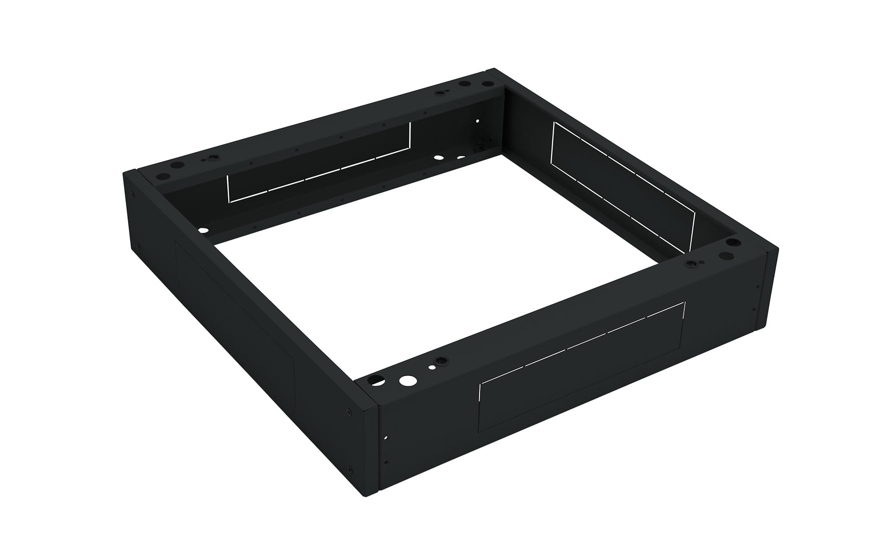 Podstawy są dostarczane do klientów zdemontowane. Drugi panel z filtrem dla drugiego panelu może być z łatwością zamówiony później. Podstawa zawsze dokładnie odwzorowuje położenie szafy, niezależnie od instalacji filtra. Podstawy mają standardowo szerokość 600 i 800 mm oraz głębokość od 600 do 1200 mm. Wszystkie podstawy są wysokie na 120 mm.