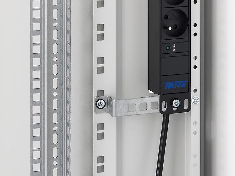 Szersze szyny w korpusie szafy przeznaczone są do dodatkowego montażu 19" paneli zarządzania zasilaniem, które następnie nie zajmują miejsca w szafie