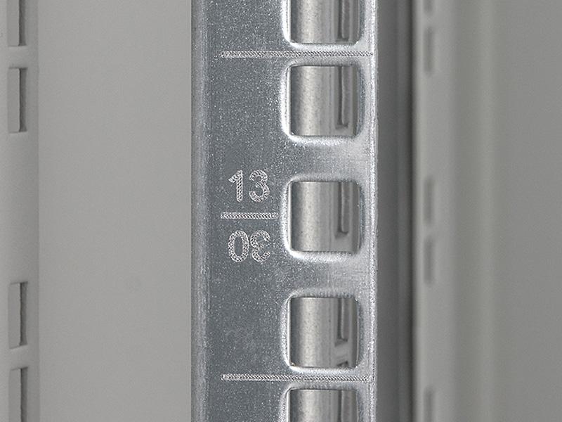 19" szyny pionowe (ze stali cynkowanej formowanej na zimno) posiadają oznaczenie wg jednostek montażowych.